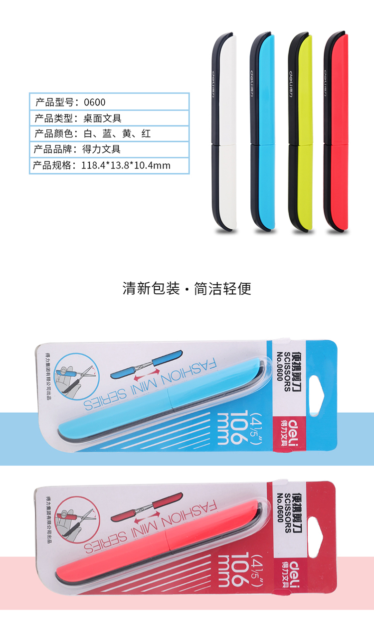 商品名称:得力(deli)0600 便携式剪刀造型小巧 自动摊开设计