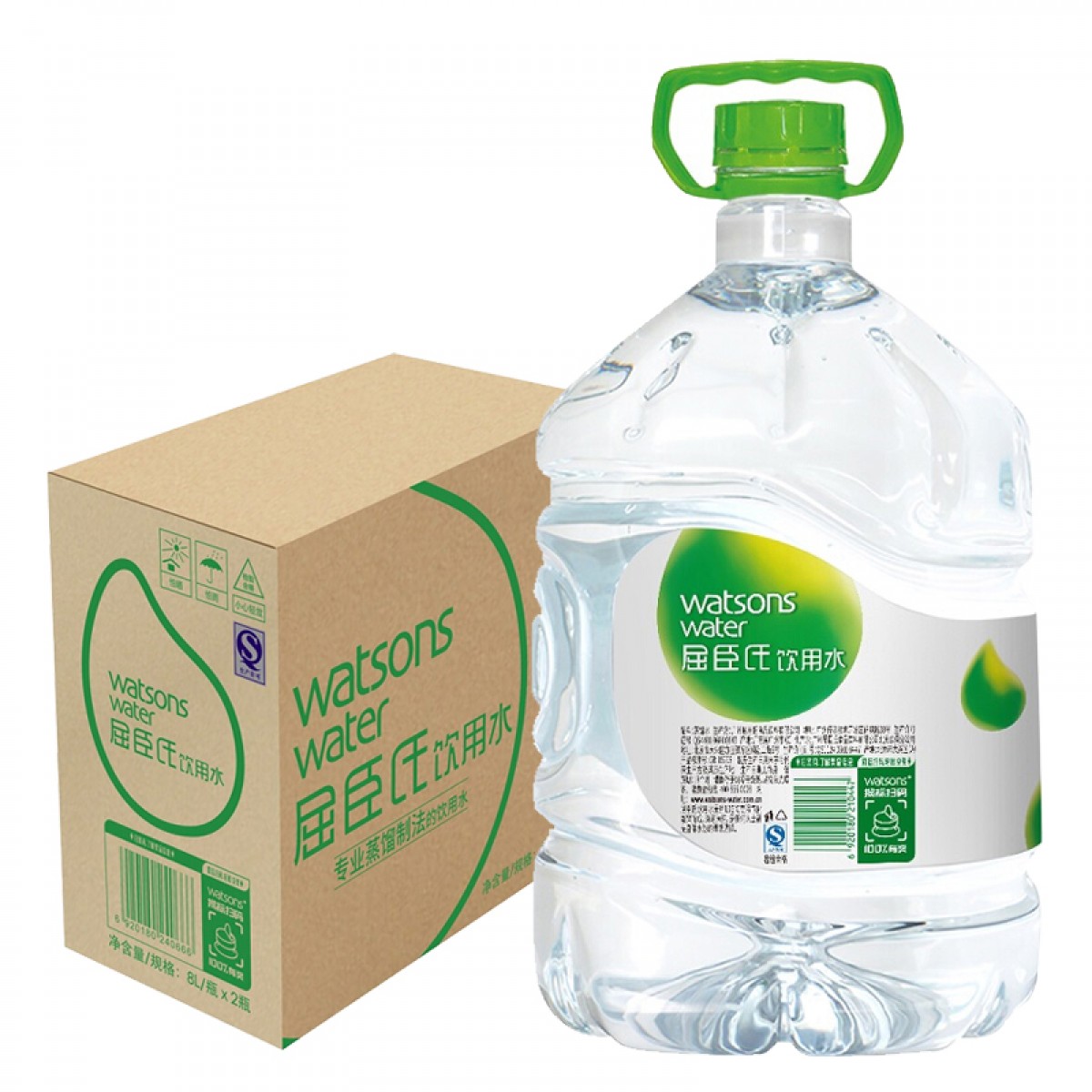 商品名称:屈臣氏饮用水(蒸法馏制)8L*2 单位:箱