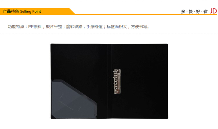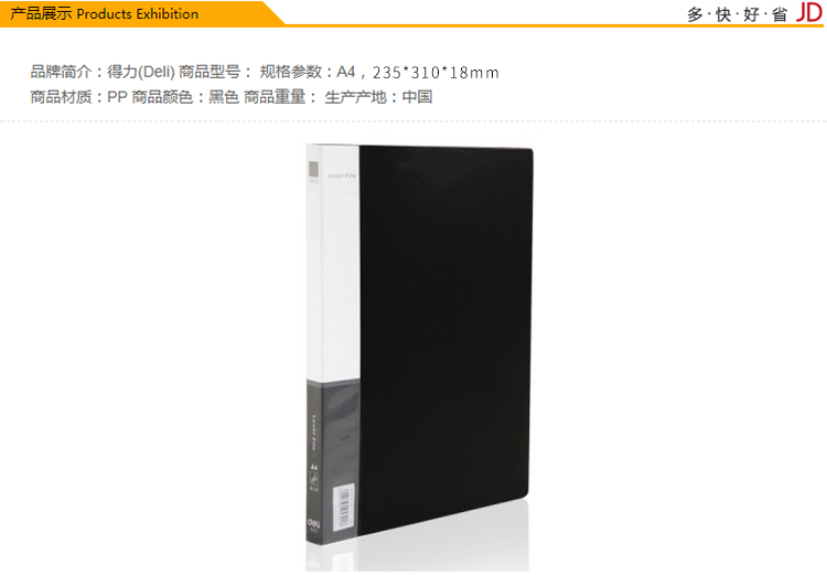 商品名称:得力(deli)5301 实用文件夹 A4单强力夹+插袋 黑色 单只装