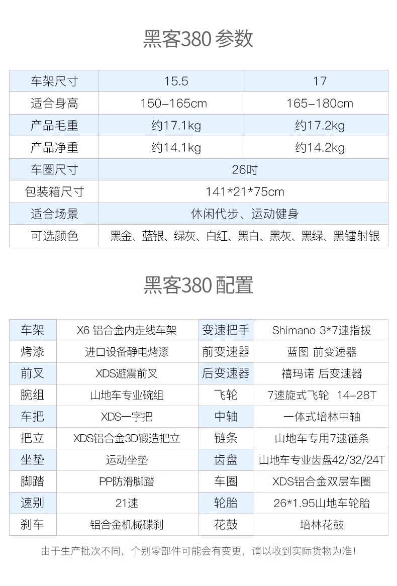 商品名称:喜德盛黑客380山地车 21速 黑白 单位:辆