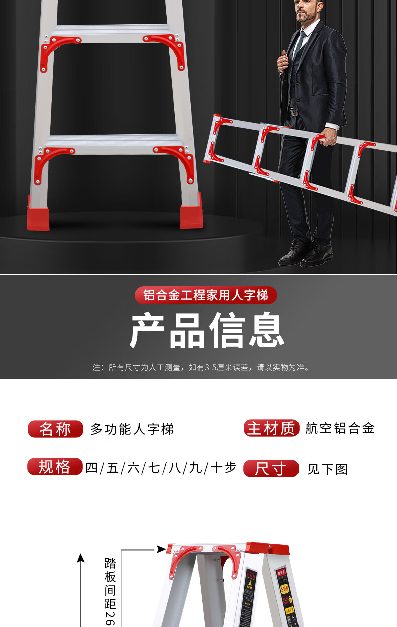 晓橙铝合金人字梯加固款 2.5米 单位:把