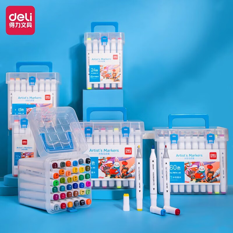 得力70816-24_PP桶装水性方杆马克笔(混)(24色/筒) 单位:筒