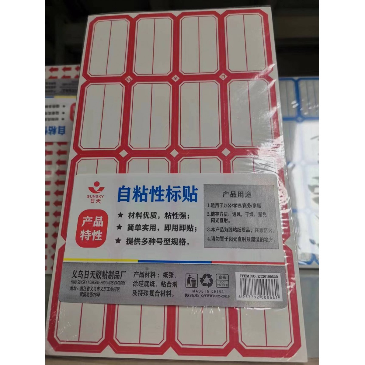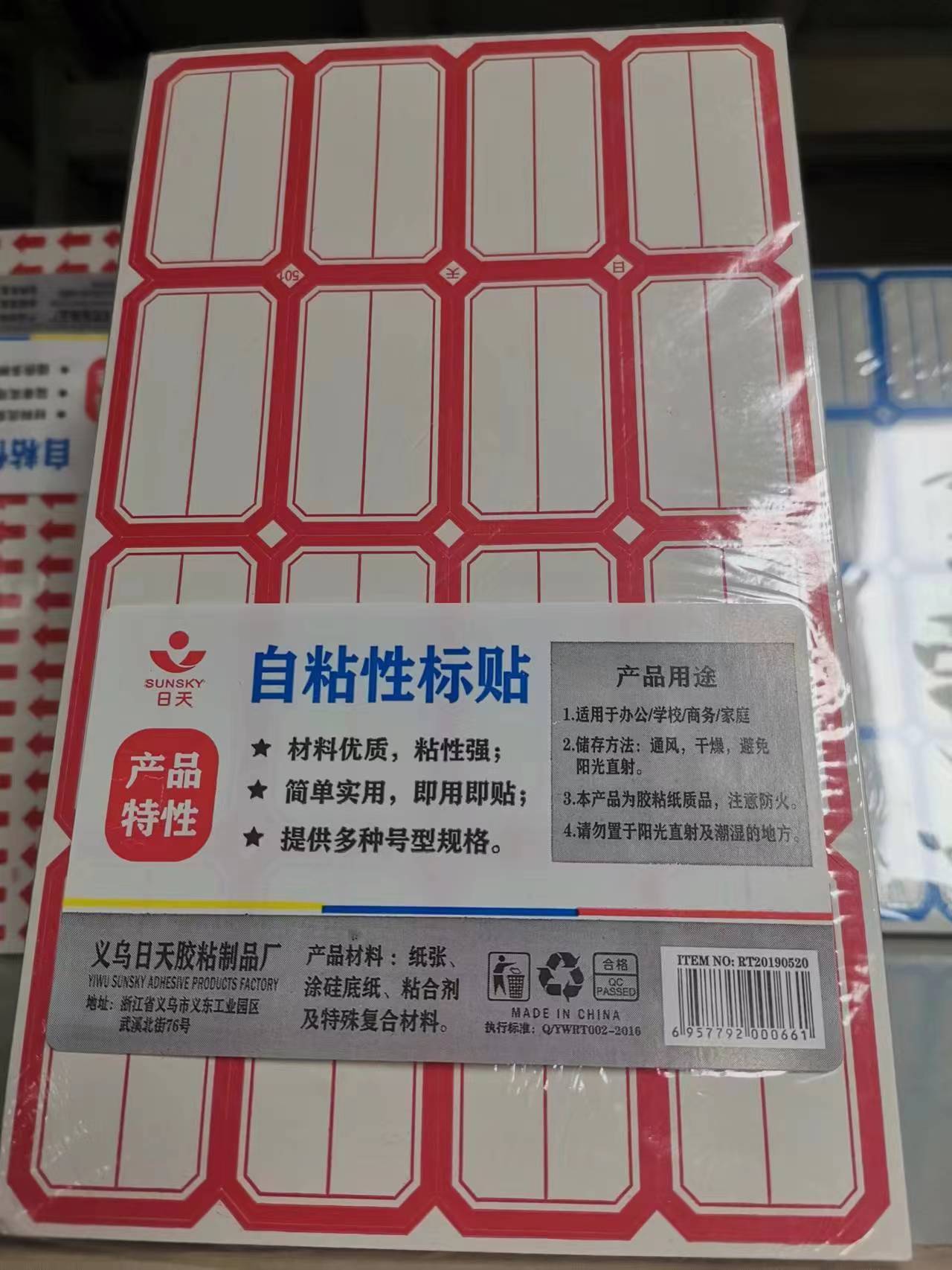 商品名称:日天S-501不干胶标签贴纸 红色 48*28mm 16贴/张 70张/包 单位:包