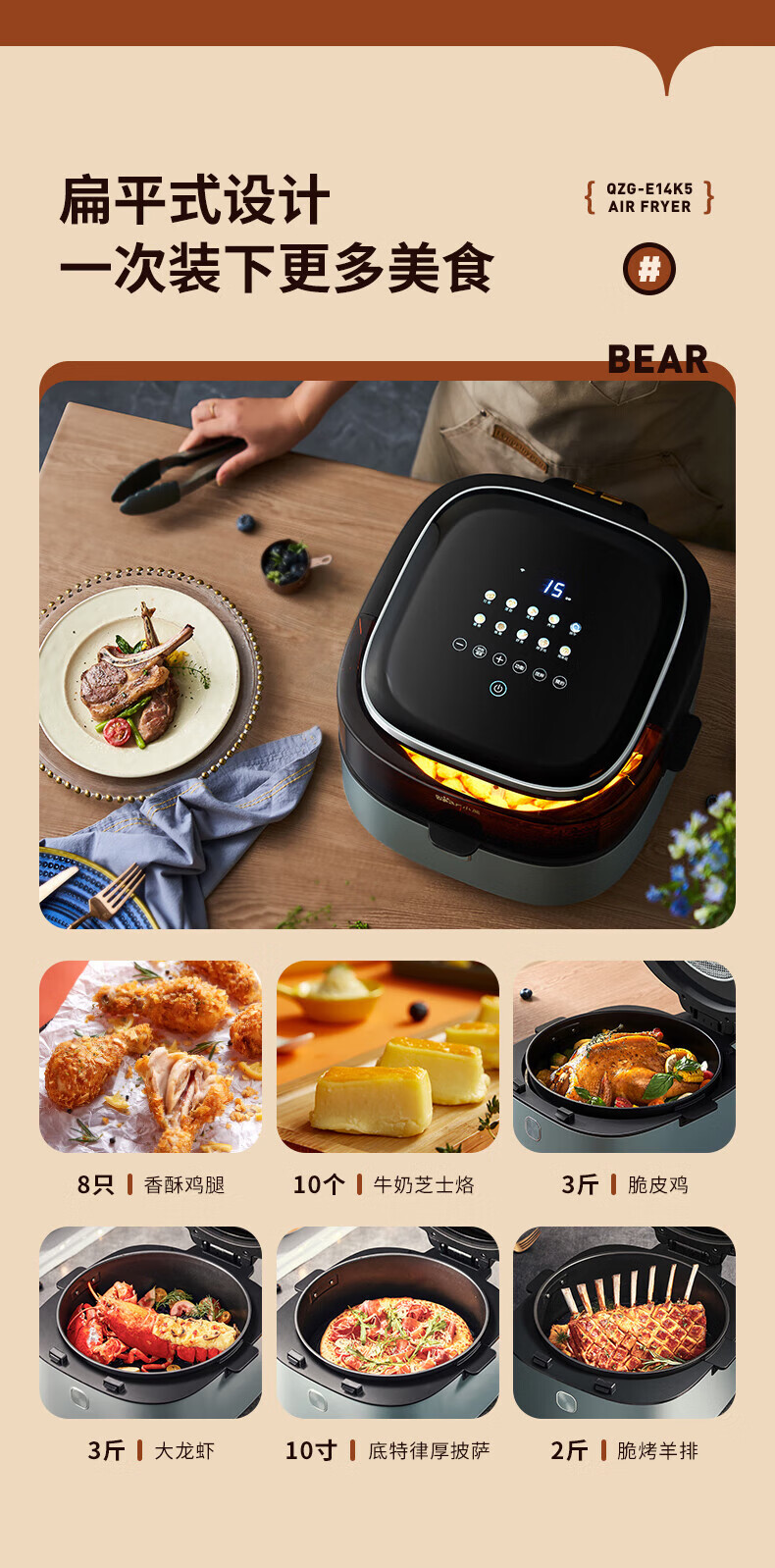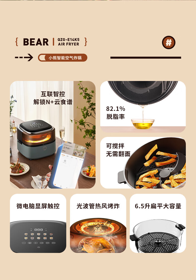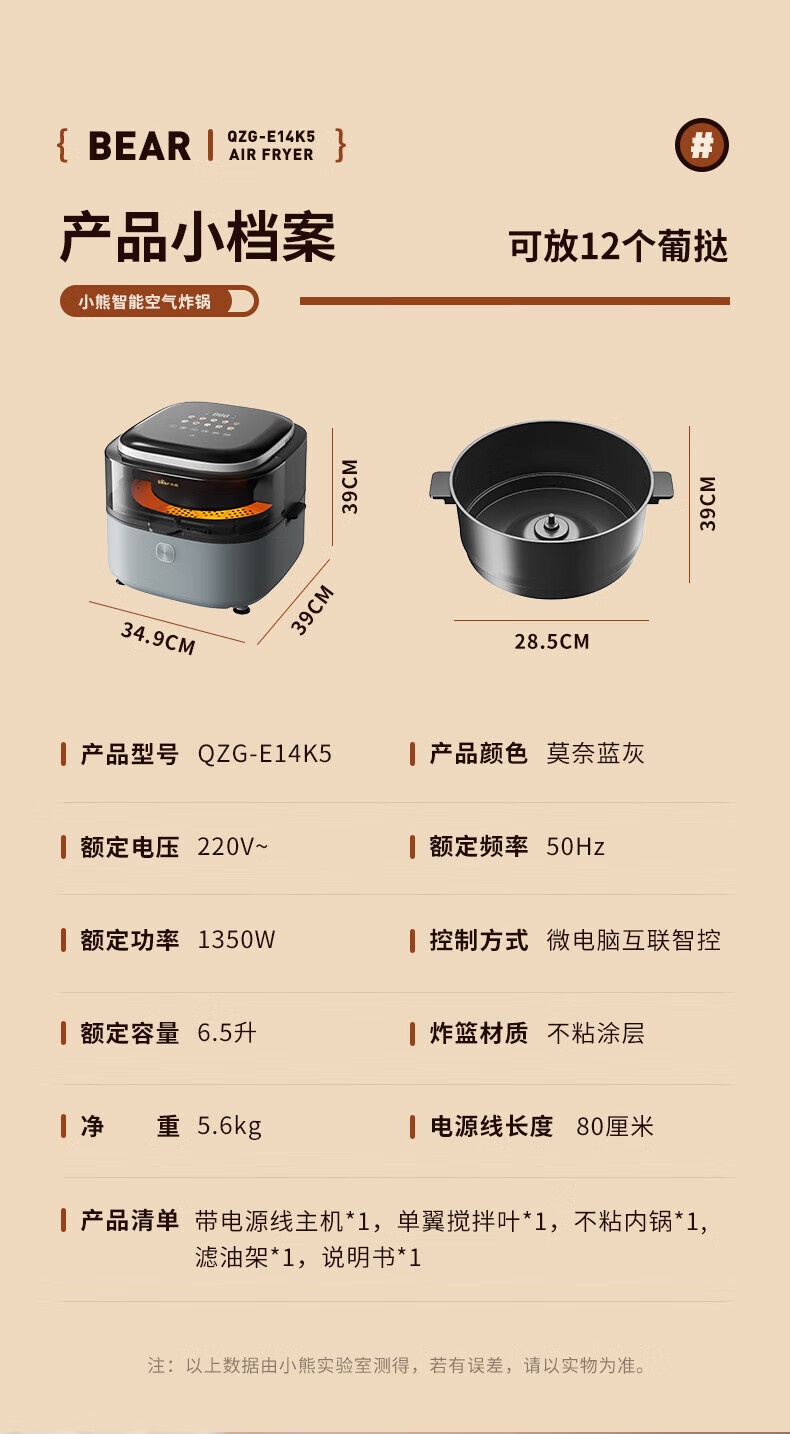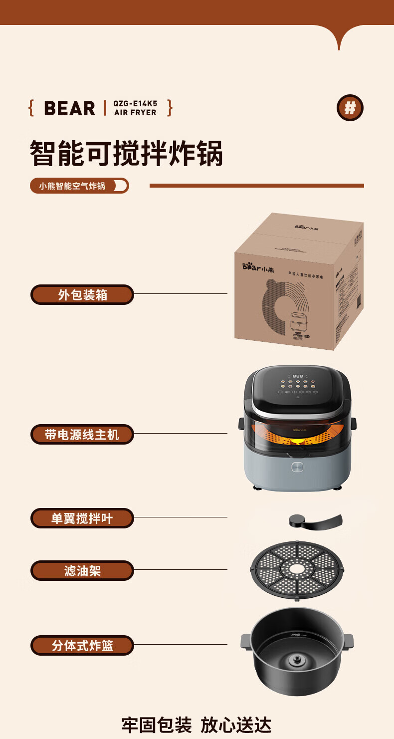 商品名称:小熊QZG-E14K5空气炸锅 灰色 单位:个