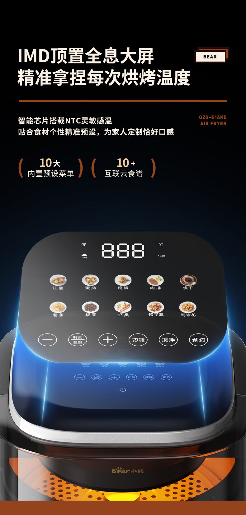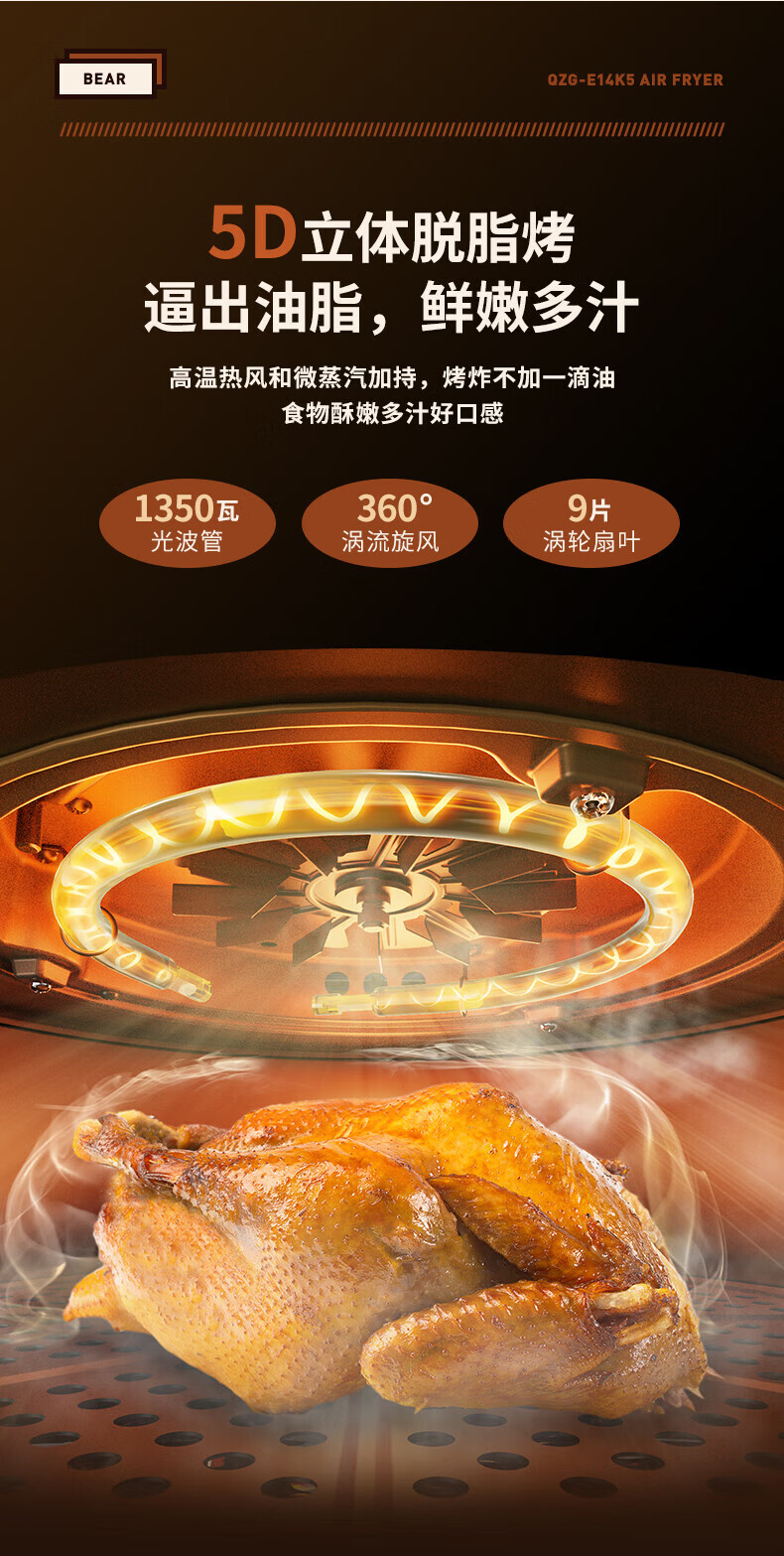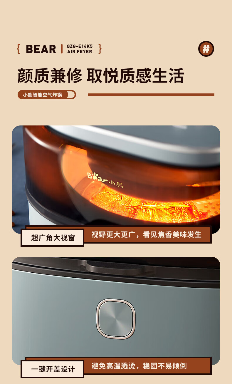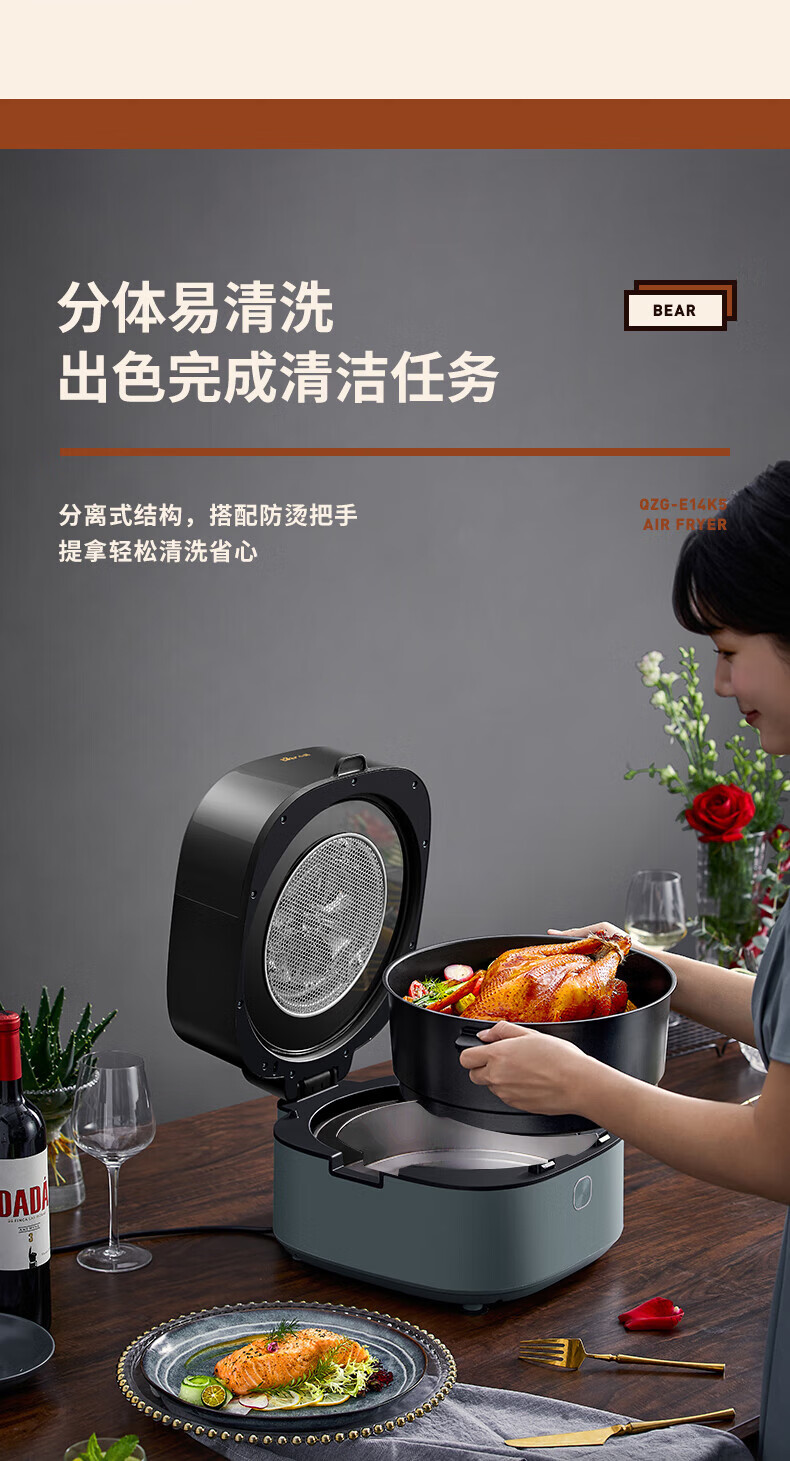 小熊QZG-E14K5空气炸锅 灰色