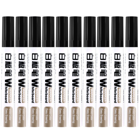 得力(deli)办公会议教学可擦易擦白板笔 黑色 10支/盒6801