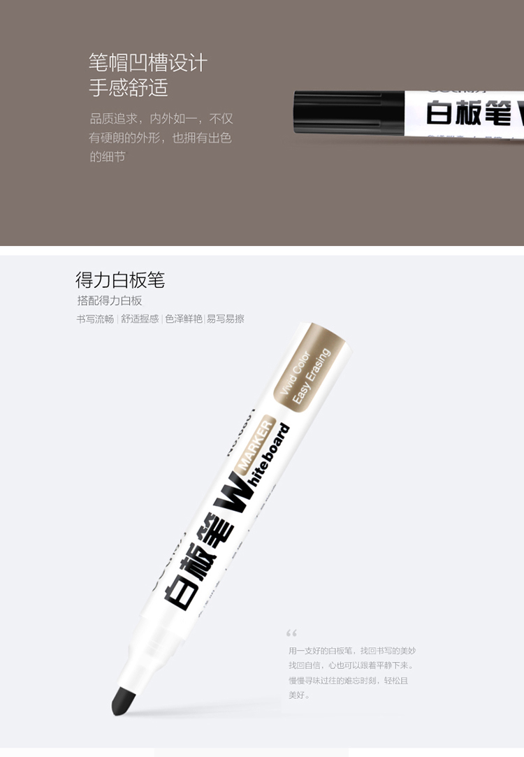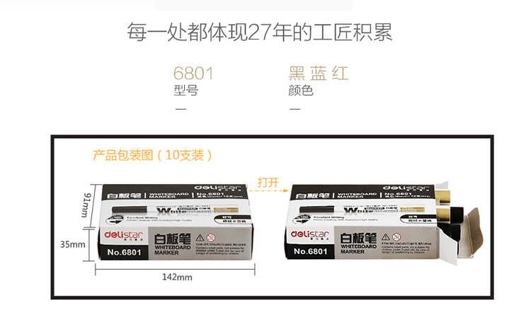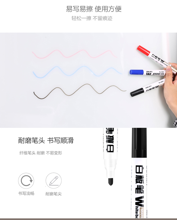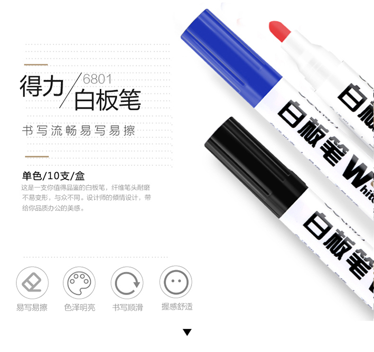 商品名称:得力(deli)办公会议教学可擦易擦白板笔 黑色 10支/盒6801