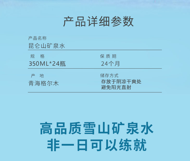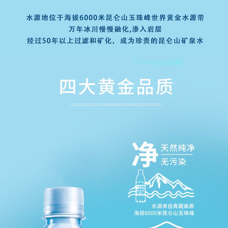 商品名称:昆仑山高端饮用天然矿泉水 350ml*24瓶 单位:箱