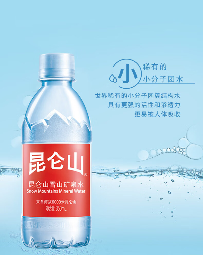 昆仑山高端饮用天然矿泉水 350ml*24瓶 单位:箱