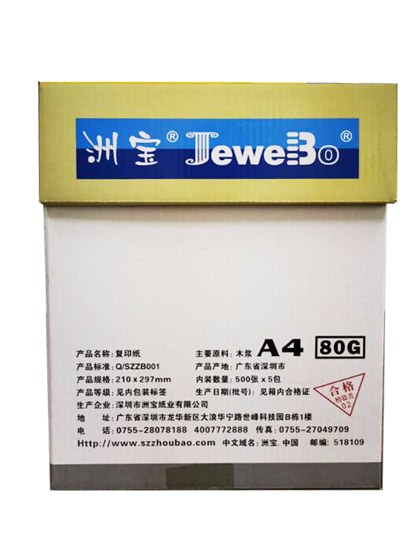 商品名称:洲宝 复印纸 A4 80g 500张*5包/箱 单位:箱