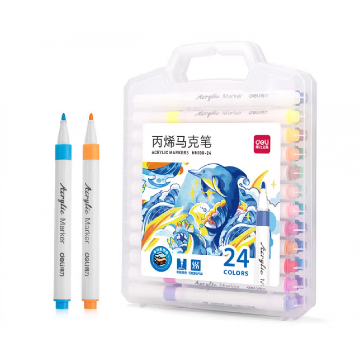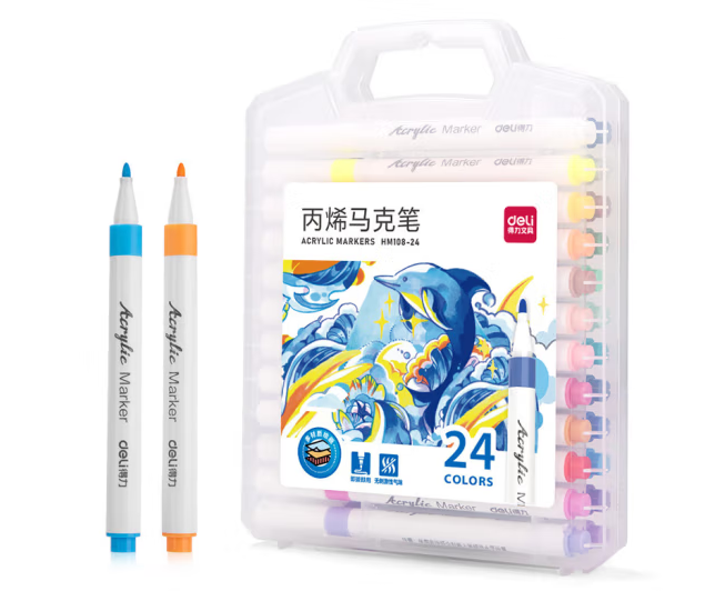 得力HM108-24 PP盒装细圆杆丙烯马克笔(混)(24色/盒)
