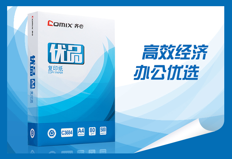齐心 C3684-5 复印纸 A4 80G 500页/包 5包/箱 白色 单位:箱