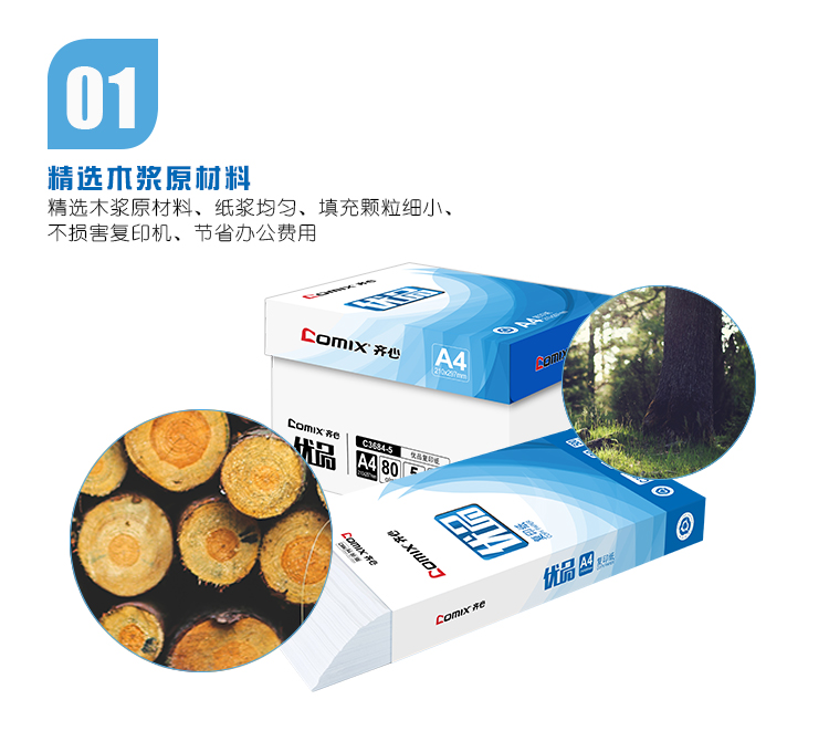 商品名称:齐心 C3684-5 复印纸 A4 80G 500页/包 5包/箱 白色 单位:箱