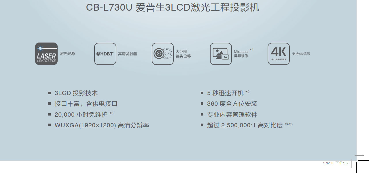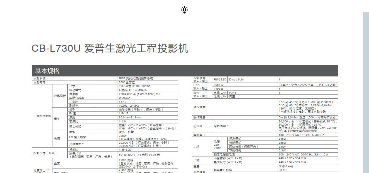 商品名称:爱普生 CB-L730U 投影仪 单位:台