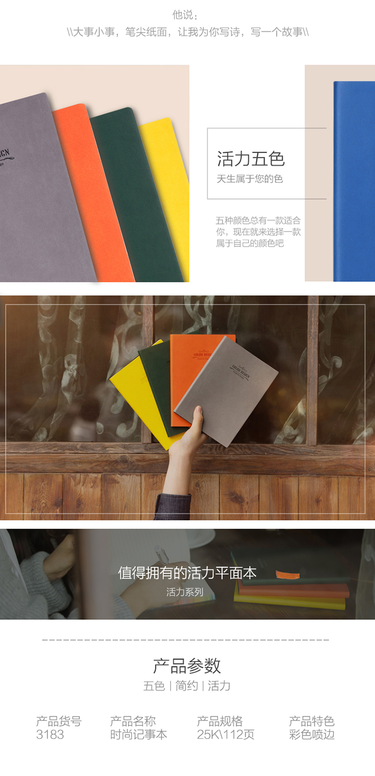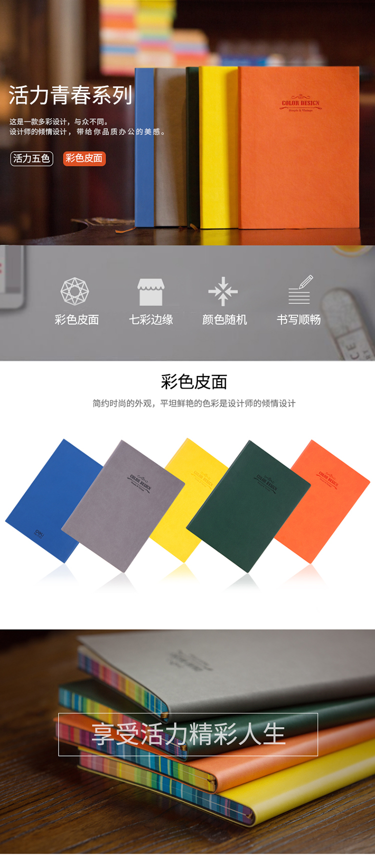 商品名称:得力(deli)25K/112页活力彩色皮面本软抄本记事本笔记本子 3183