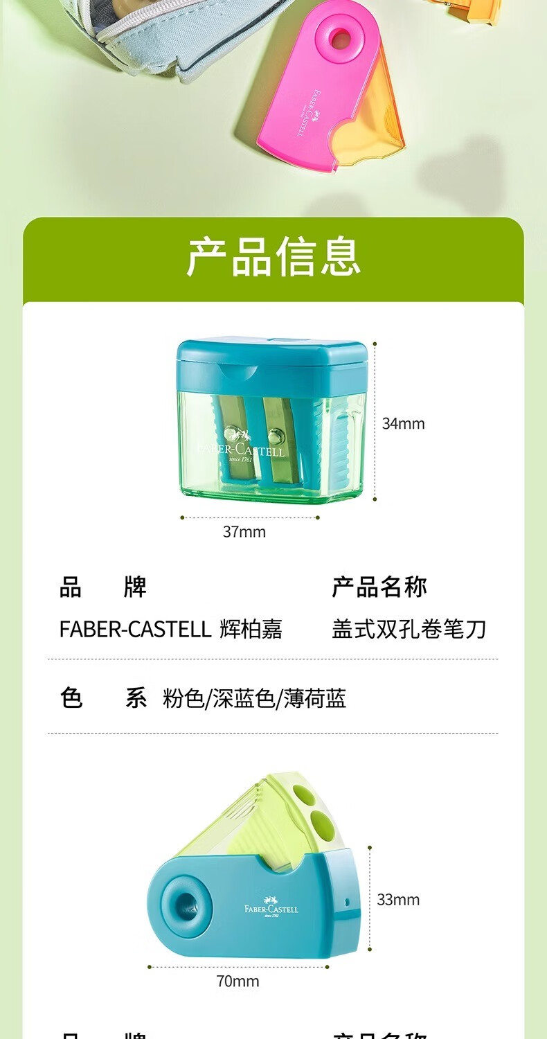 商品名称:辉柏嘉1831 双孔自锁笔刨 混色 12个/盒 单位:个