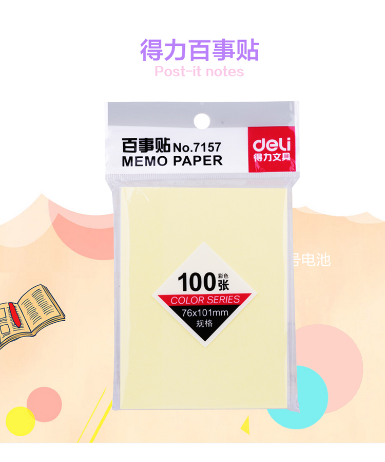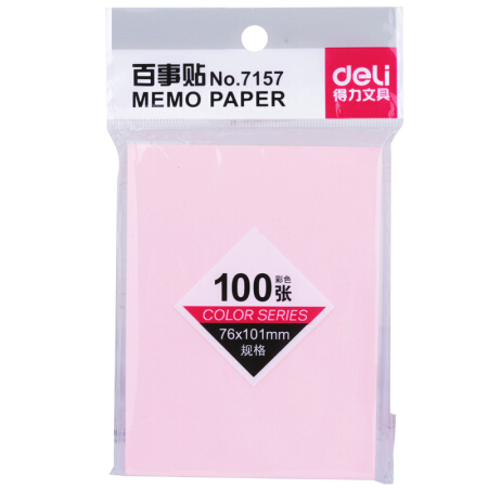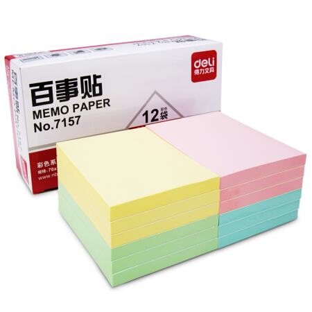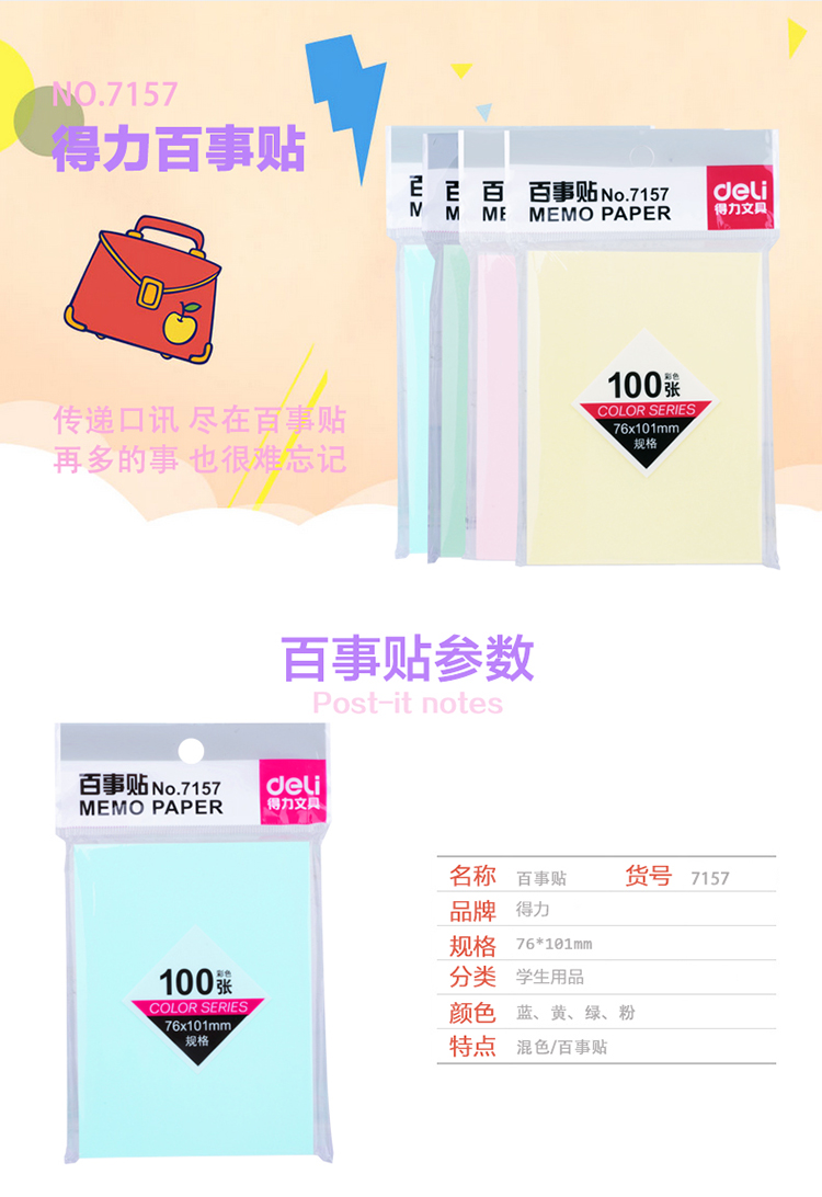 商品名称:得力7157彩色百事贴 76×101mm100张/本/12本/盒