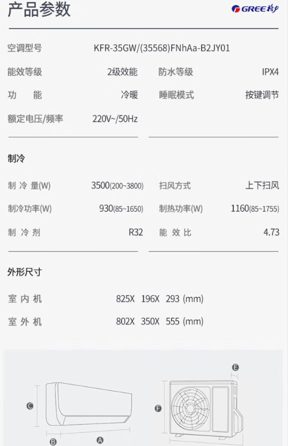 商品名称:格力/GREE KFR-35GW/(35563)FNhAa-B2JY01 清柔风变频冷暖正1.5匹2级能效挂机空调 皓雪白 单位:台