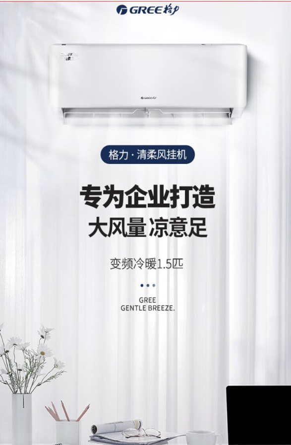 格力/GREE KFR-35GW/(35563)FNhAa-B2JY01 清柔风变频冷暖正1.5匹2级能效挂机空调 皓雪白