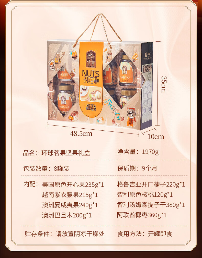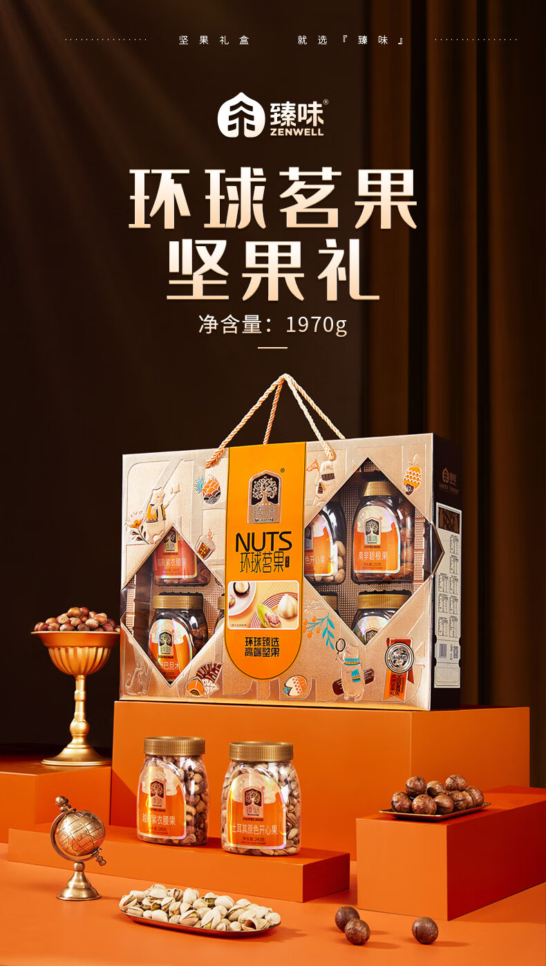 商品名称:臻味零食礼盒 环球茗果礼盒1970g 单位:盒