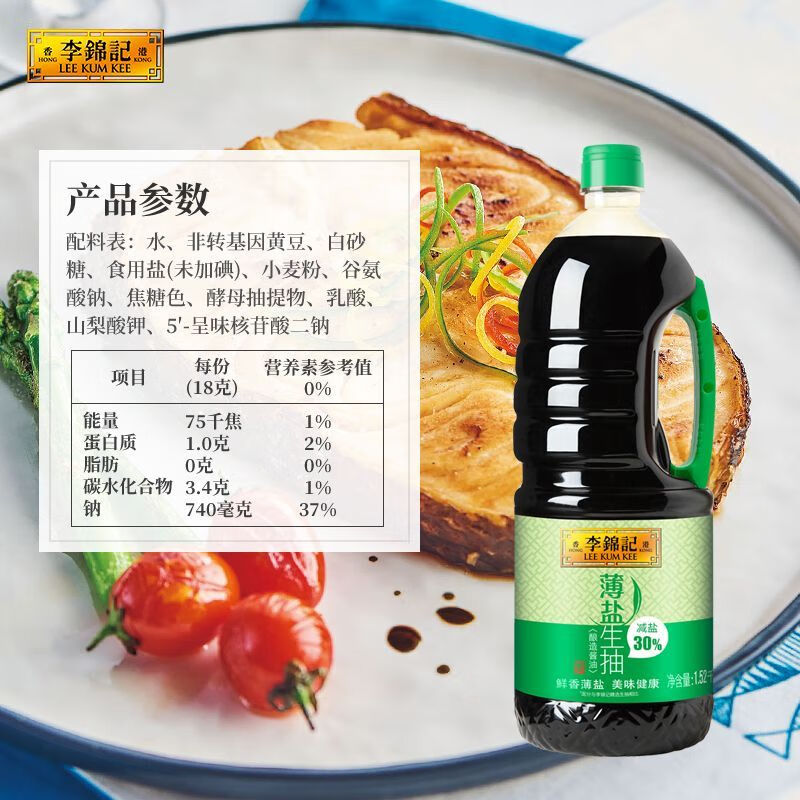 商品名称:李锦记薄盐生抽 1.52kg 单位:瓶