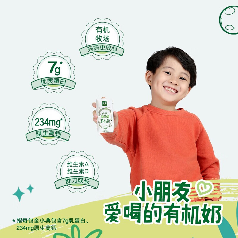 商品名称:伊利 金小典儿童有机成长牛奶原生高钙乳蛋白 195ml*16盒/箱 单位:箱