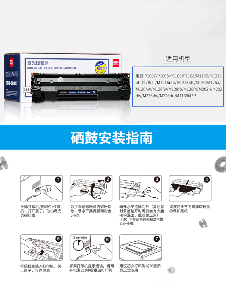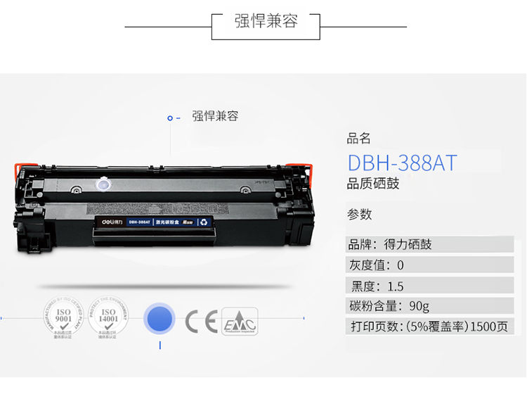 商品名称:得力(deli)DBH-388AT黑色硒鼓/碳粉盒(适用惠普P1007 P1106 M1136 M1213nf M1216nfh)