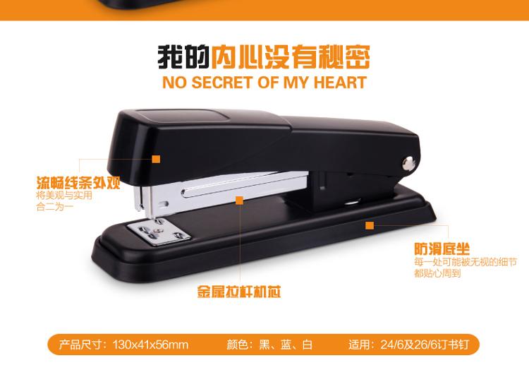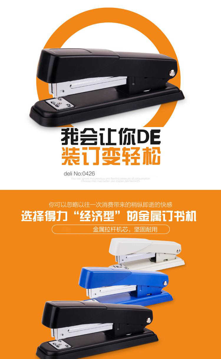 商品名称:得力(deli)0426 经济型金属材质订书机(24/6或者26/6钉型)颜色随机