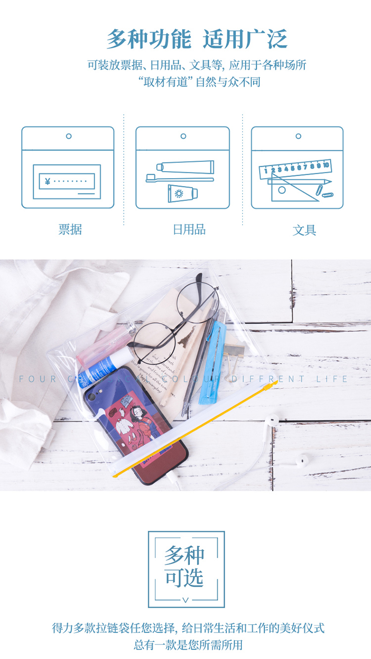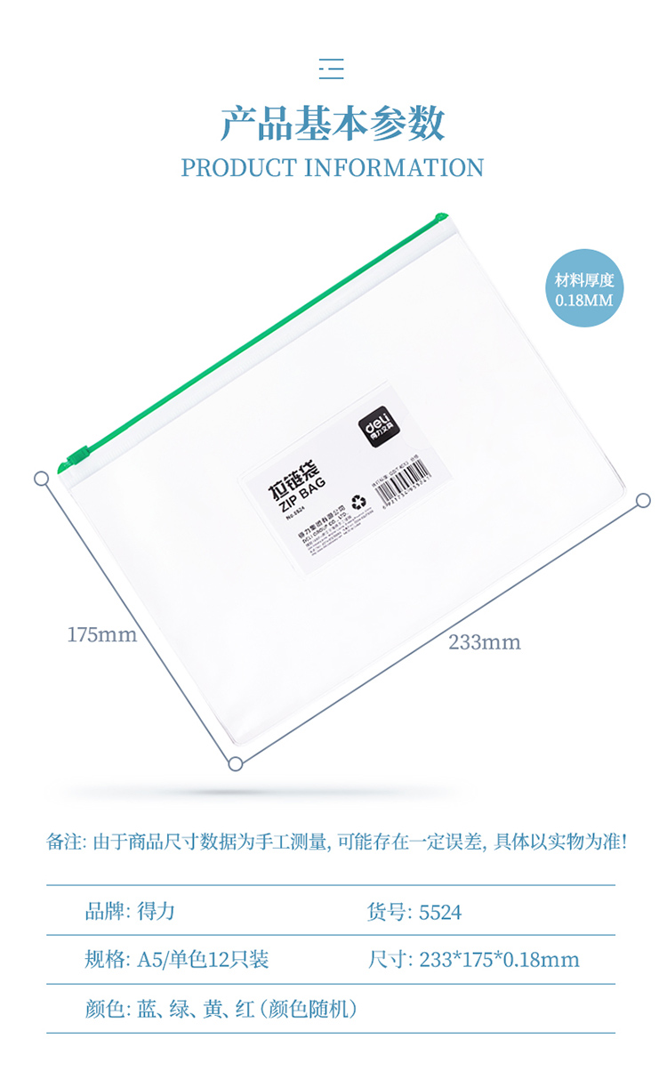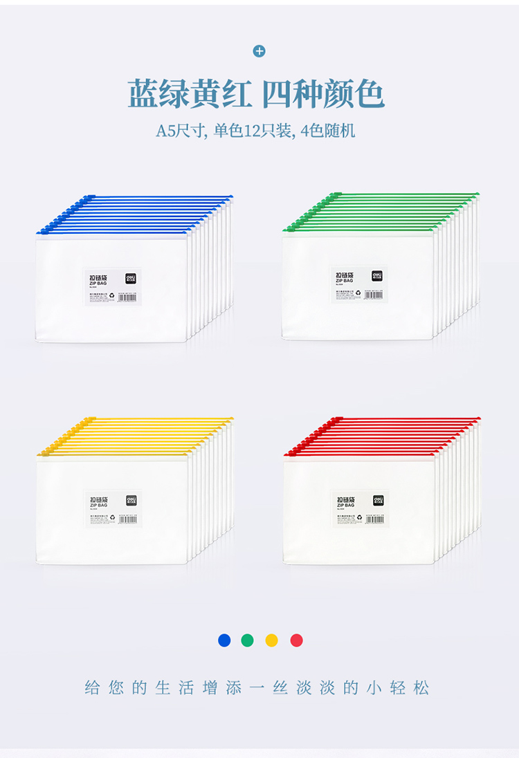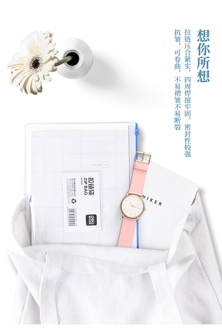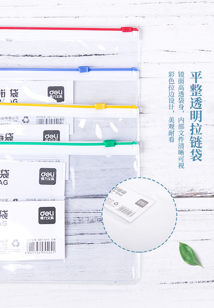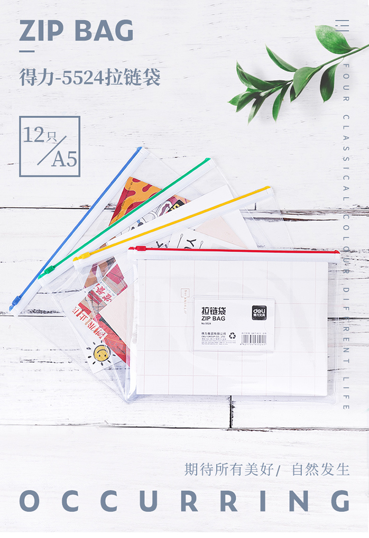 商品名称:得力(deli)5524 A5透明防水拉链袋/文件袋/资料档案 12只装
