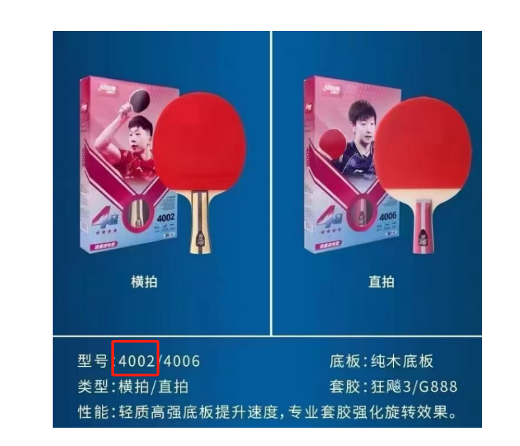 商品名称:红双喜4002乒乓球拍 横拍 4星 单位:支