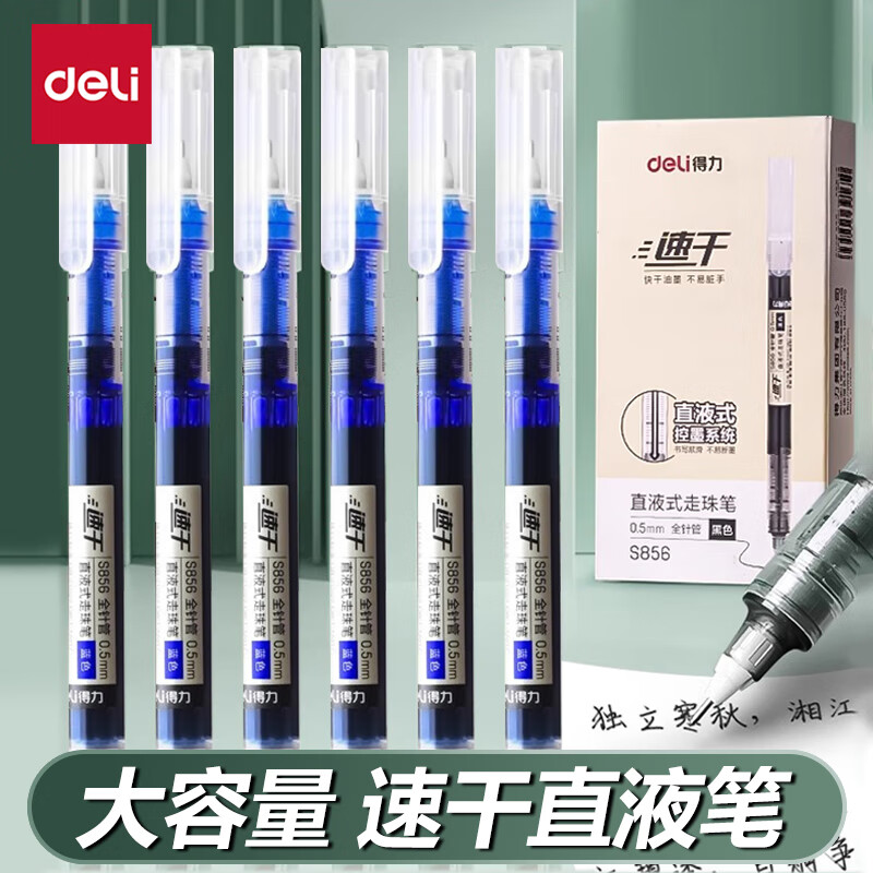 得力S856直液式走珠 0.5mm全针管中性笔 签字水笔 12支/盒 蓝色