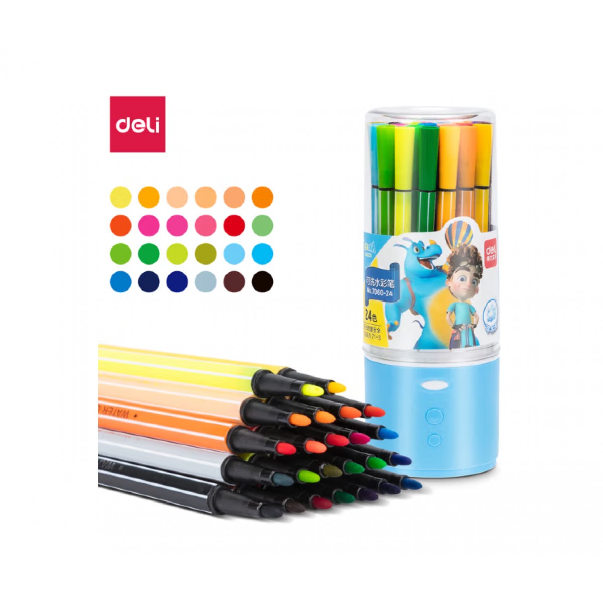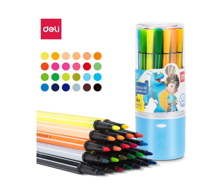 商品名称:得力7060-24色细六角杆水彩笔(蓝) 单位:筒