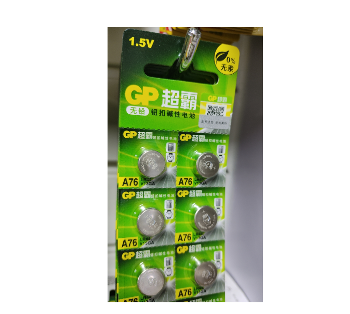 商品名称:超霸A76纽扣碱性电池 1.5v 10粒/卡 单位:卡