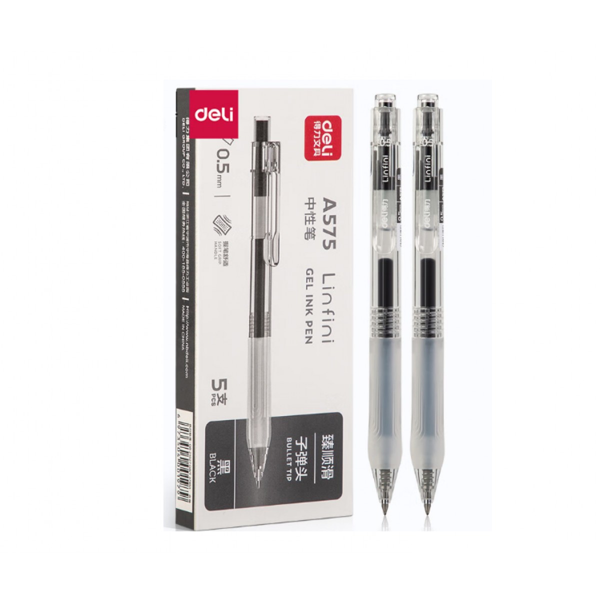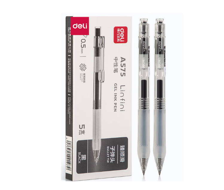 商品名称:得力A575学生按动中性笔0.5mm臻顺滑(黑) 5支/盒 单位:盒
