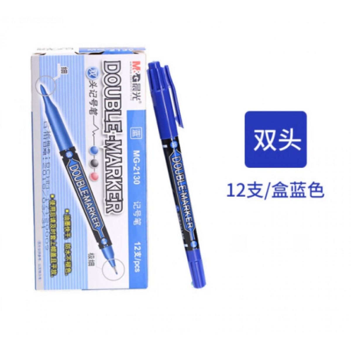商品名称:晨光MG2130双头物流记号笔 小双头笔 蓝色 12支/盒 单位:盒