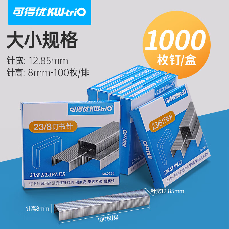 商品名称:可得优0238订书钉 1000枚 订50页单 订书针23/8 单位:盒