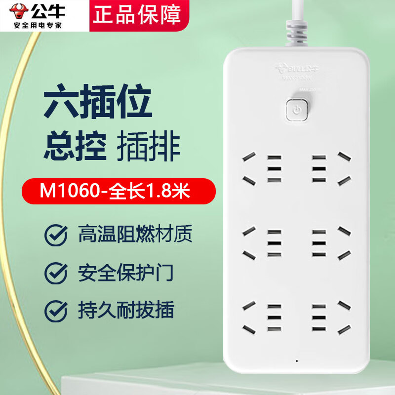 公牛GN-M1060新国标 6位总控电源插座 1.8M 单位:个