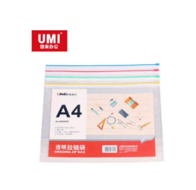 悠米W06002X PVC透明拉链袋 A4 混色 单位:个