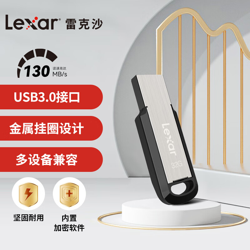 雷克沙U盘 32GB USB3.0 M400 读速130MB/s 环孔金属