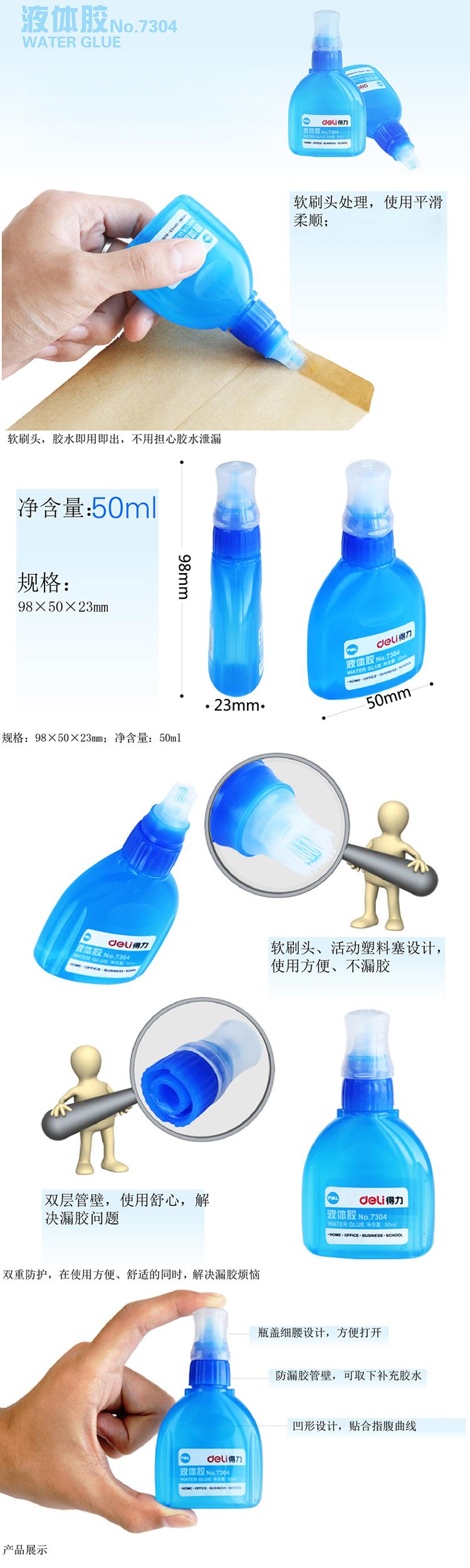 商品名称:得力(deli)7304 透明液体胶/胶水 50ml/瓶 12瓶/盒 50ml/瓶 12瓶/盒