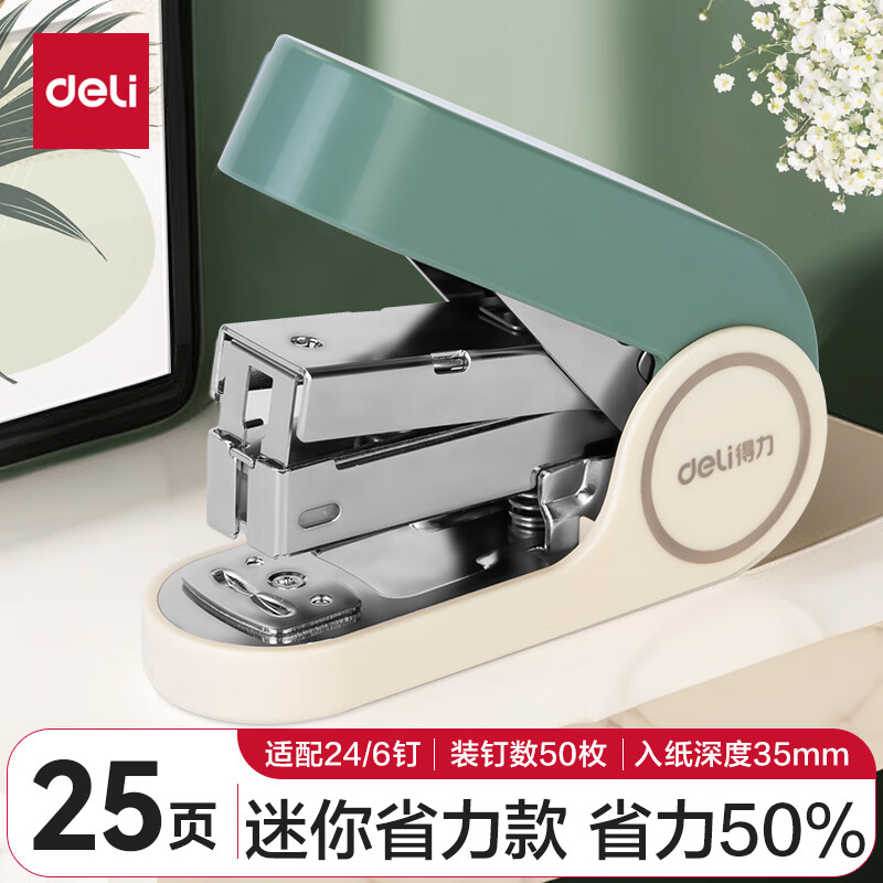 得力TA502迷你省力订书机 适配24/6钉 绿色
