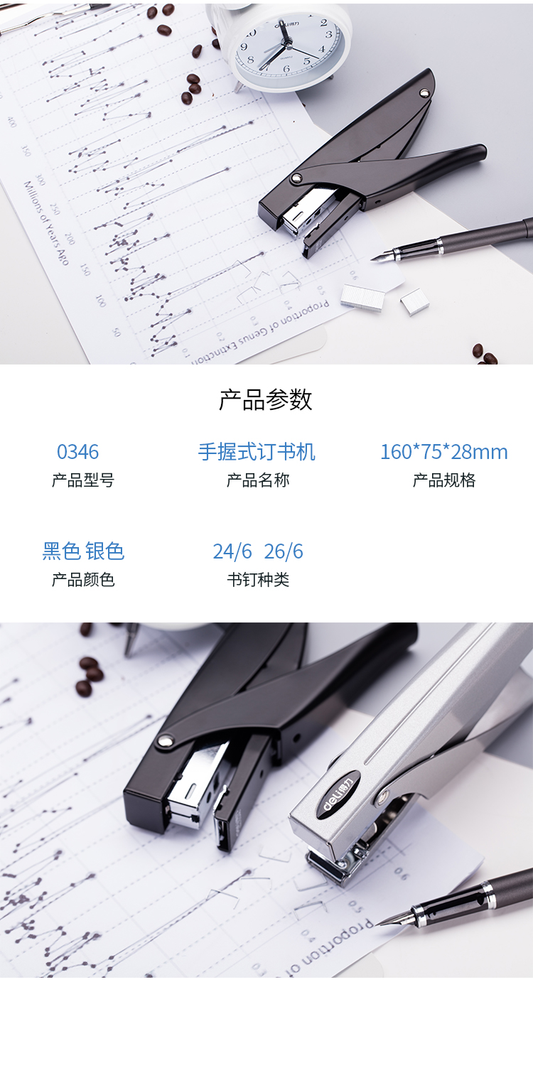 商品名称:得力(deli) 0346 金属耐用手握式订书机 颜色随机