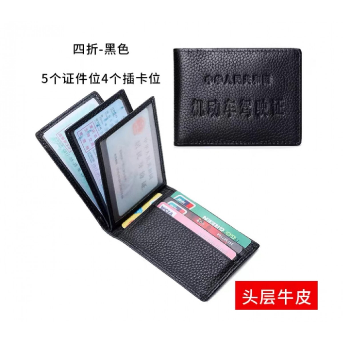 机动车驾驶证皮套 头层牛皮 黑色 四折(5个证件位4个插卡位)