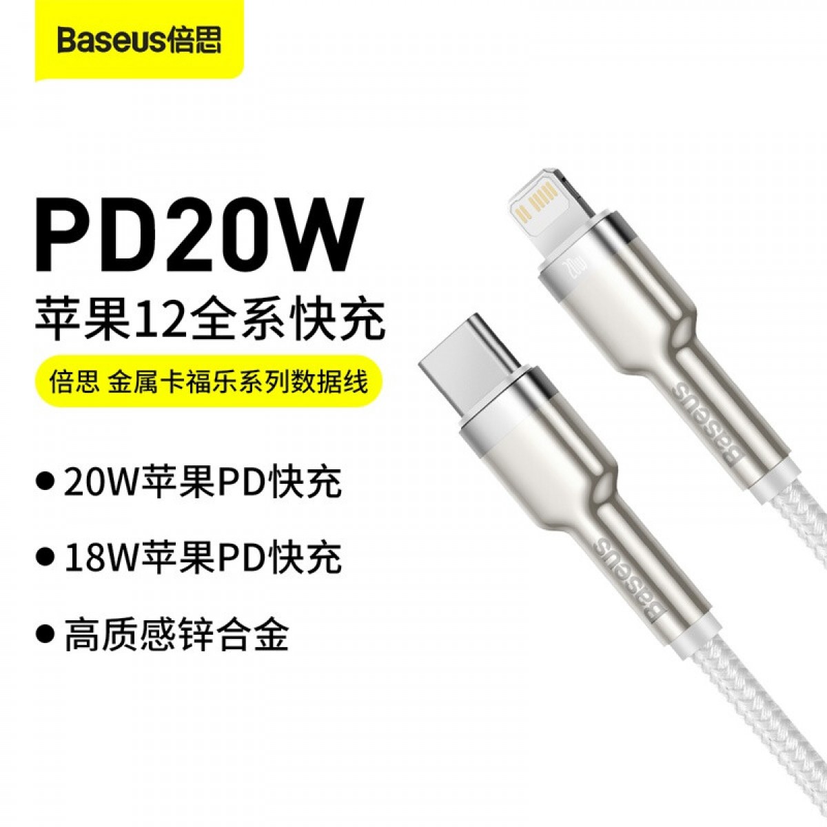 倍思 苹果数据线PD快充20W充电器线Type-c转Lightning 1米 白色