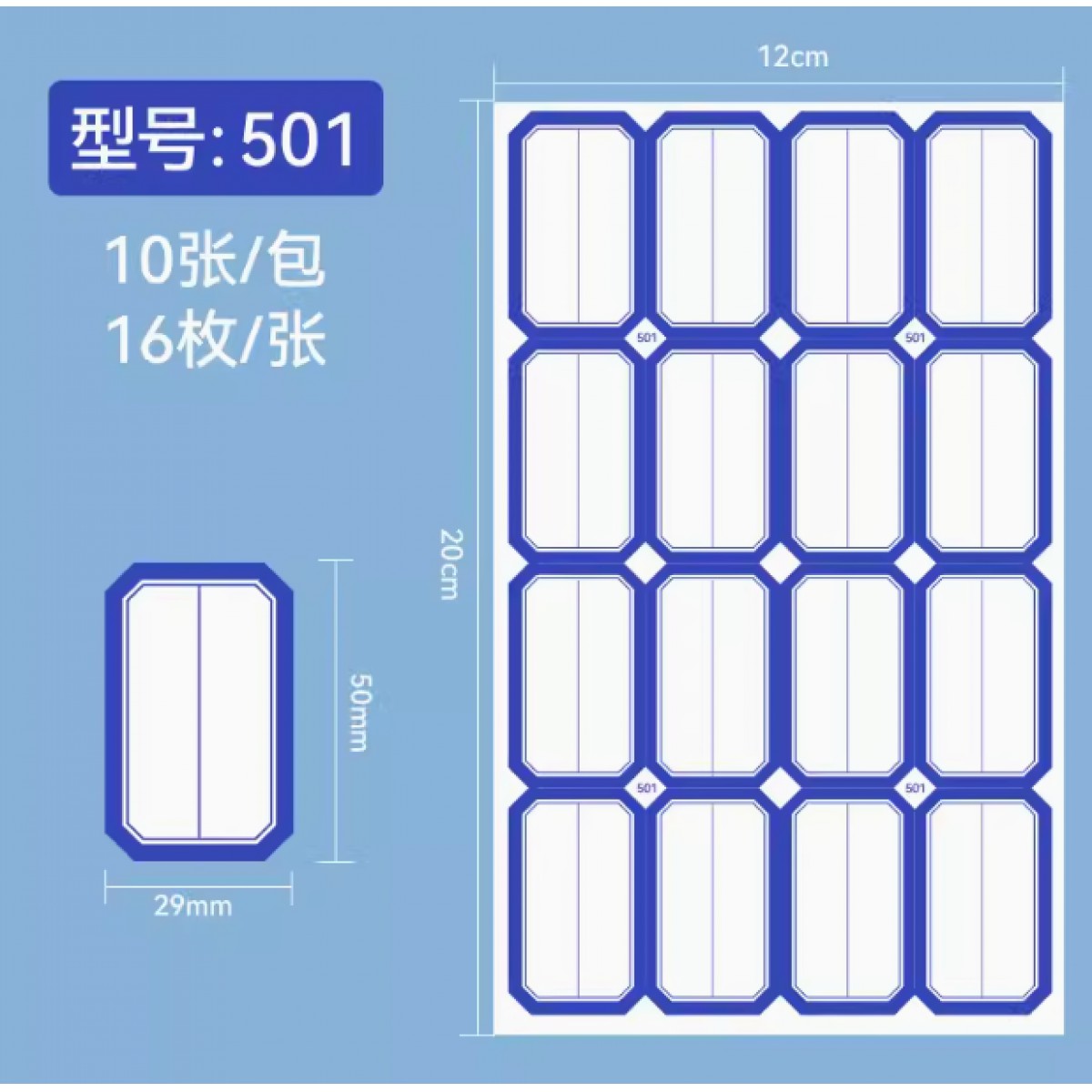 501不干胶标签贴纸 蓝色 29*50mm 16枚/张 10张/包