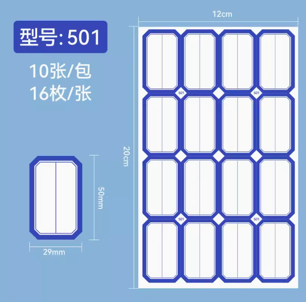 商品名称:501不干胶标签贴纸 蓝色 29*50mm 16枚/张 10张/包 单位:包