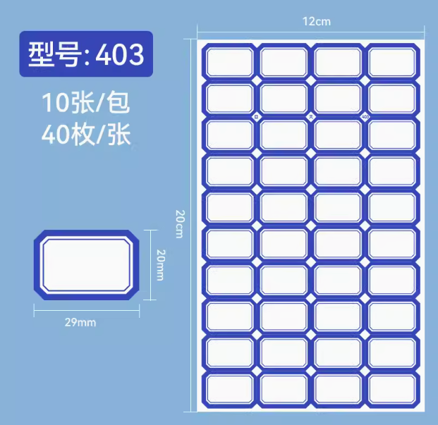 403不干胶标签贴纸 蓝色 29*20mm 40枚/张 10张/包
