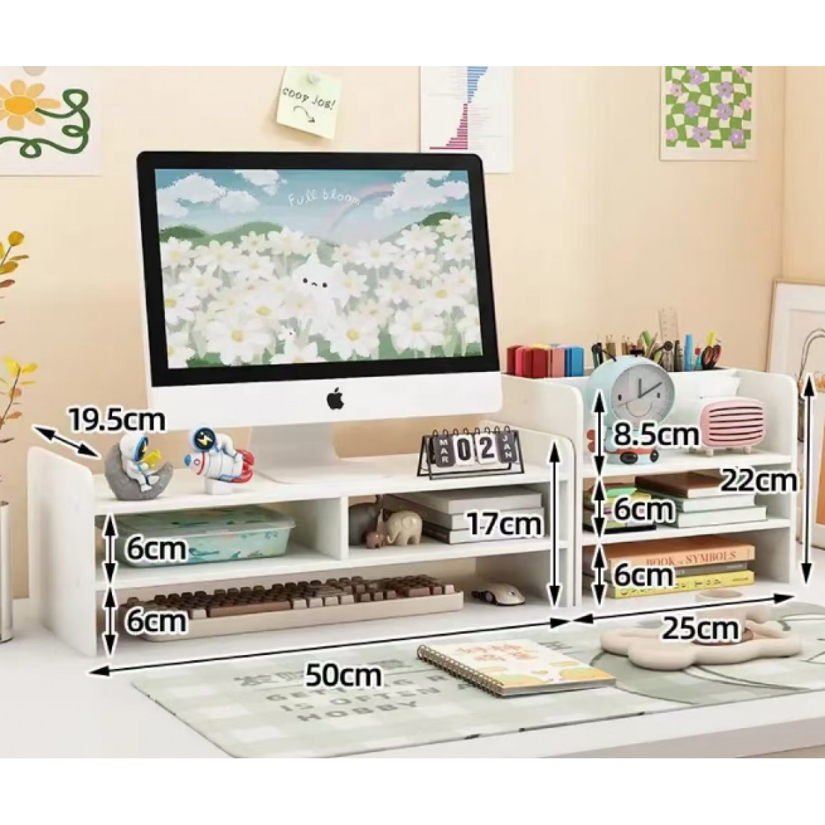 电脑增高架收纳架 双层白色+格子