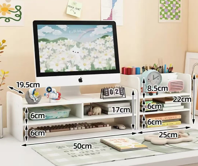 商品名称:电脑增高架收纳架 双层白色+格子 单位:个