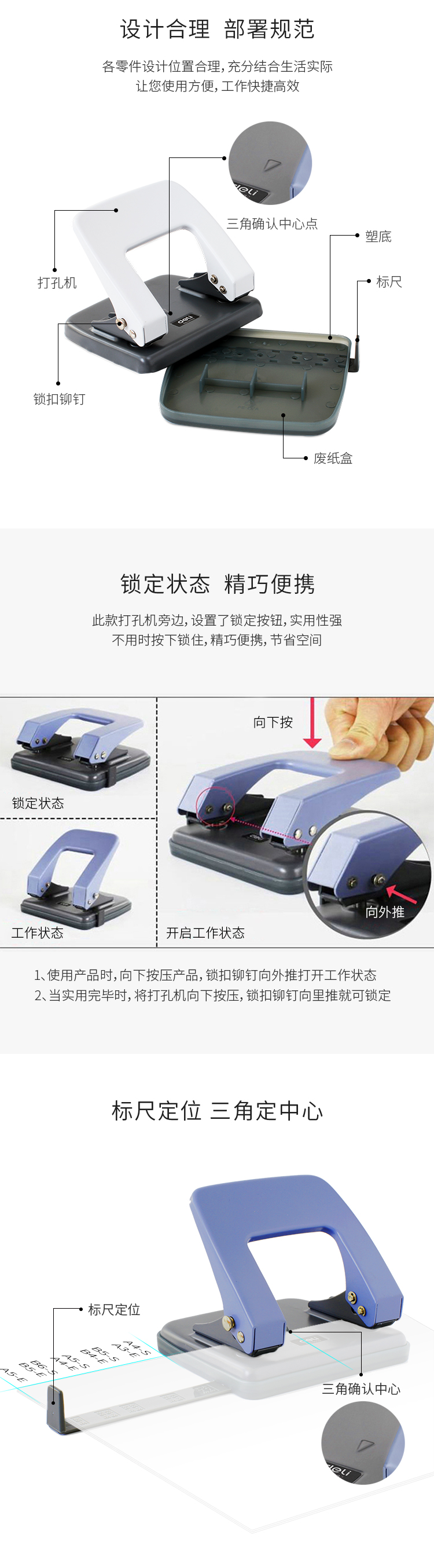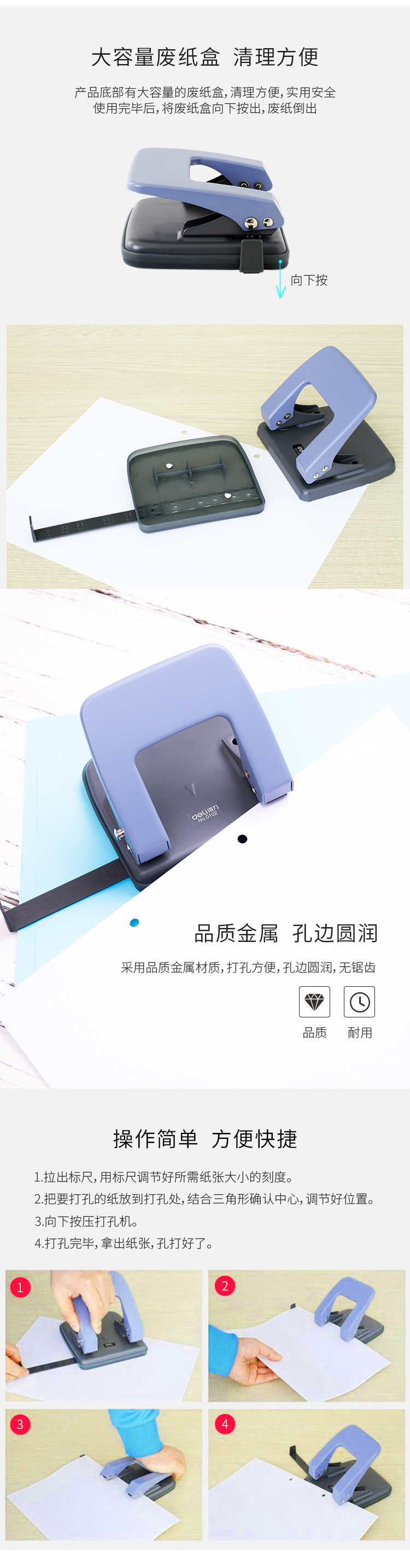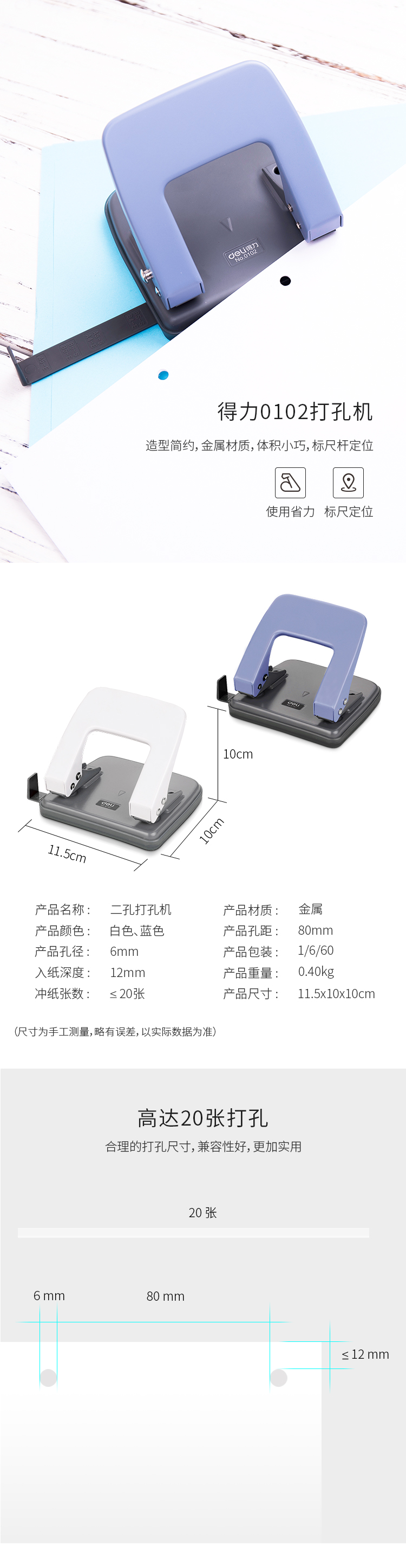 商品名称:得力(deli)φ6mm可打20页两孔打孔器打孔机(带标尺) 中号混色0102